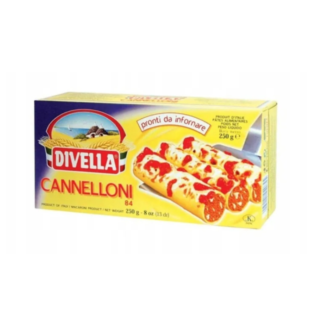 Divella Cannelloni is a traditional Italian pasta shaped into small, elegant tubes. Easy to prepare, it is a staple ingredient in many households. Cannelloni is often filled with minced meat, but can also be served with tomato and béchamel sauce and topped with grated Parmesan. This pasta brings authentic Italian flavors to your kitchen and is perfect for traditional Italian dishes.