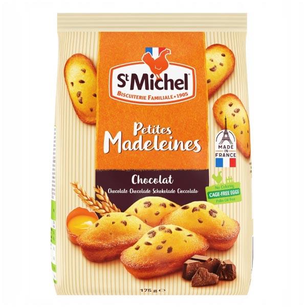 St. Michel mini madeleines with chocolate chips are soft, buttery French sponge cakes enriched with delicious chocolate pieces for an irresistible treat.
