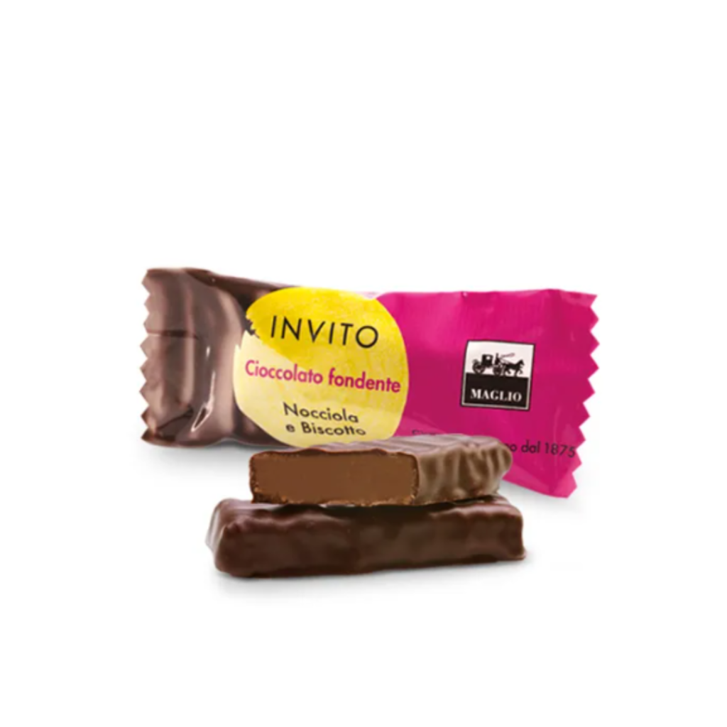 The Invito dark chocolate bar is an ideal choice for anyone seeking a delicious and satisfying treat. Rich dark chocolate is combined with crunchy biscuit pieces and roasted hazelnuts, providing a unique texture and flavor experience in every bite. Enjoy it for breakfast, as a snack, or after dinner, and indulge your taste buds any time of day.