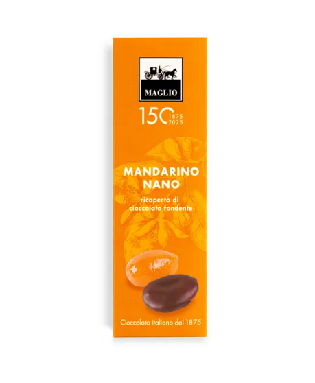These chocolate-covered miniature mandarins capture the finest character of Mediterranean fruit. Carefully selected Sicilian dwarf mandarins are soaked in maraschino distillate to enhance their natural sweetness and fragrance. They are then coated in extra dark chocolate, creating a perfect balance between vibrant citrus freshness and deep, rich cocoa notes. Each bite offers a harmonious blend of fruity sweetness, warm liqueur undertones and refined dark chocolate bitterness. Presented in a 90 g mini box, this product is an elegant gift, a special delicacy, or a moment of everyday luxury.