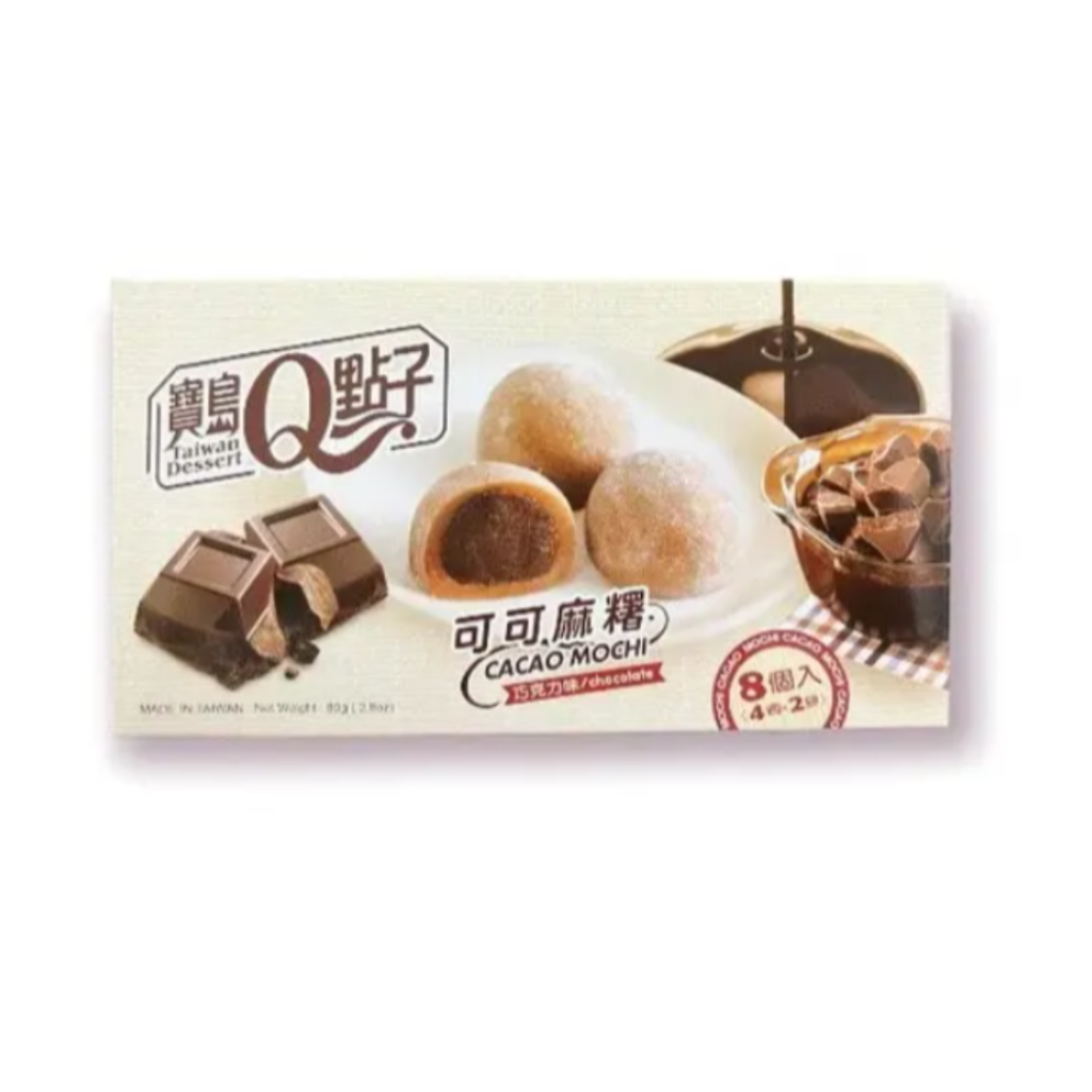 Q Mico Mochi Chocolate is an authentic Japanese rice cake made from glutinous rice paste, filled with a sweet chocolate-flavored center. Mochi is traditionally enjoyed during Japanese New Year celebrations but is now loved all year round. The unique texture combines a soft, chewy outer layer with a creamy filling for a harmonious taste experience.