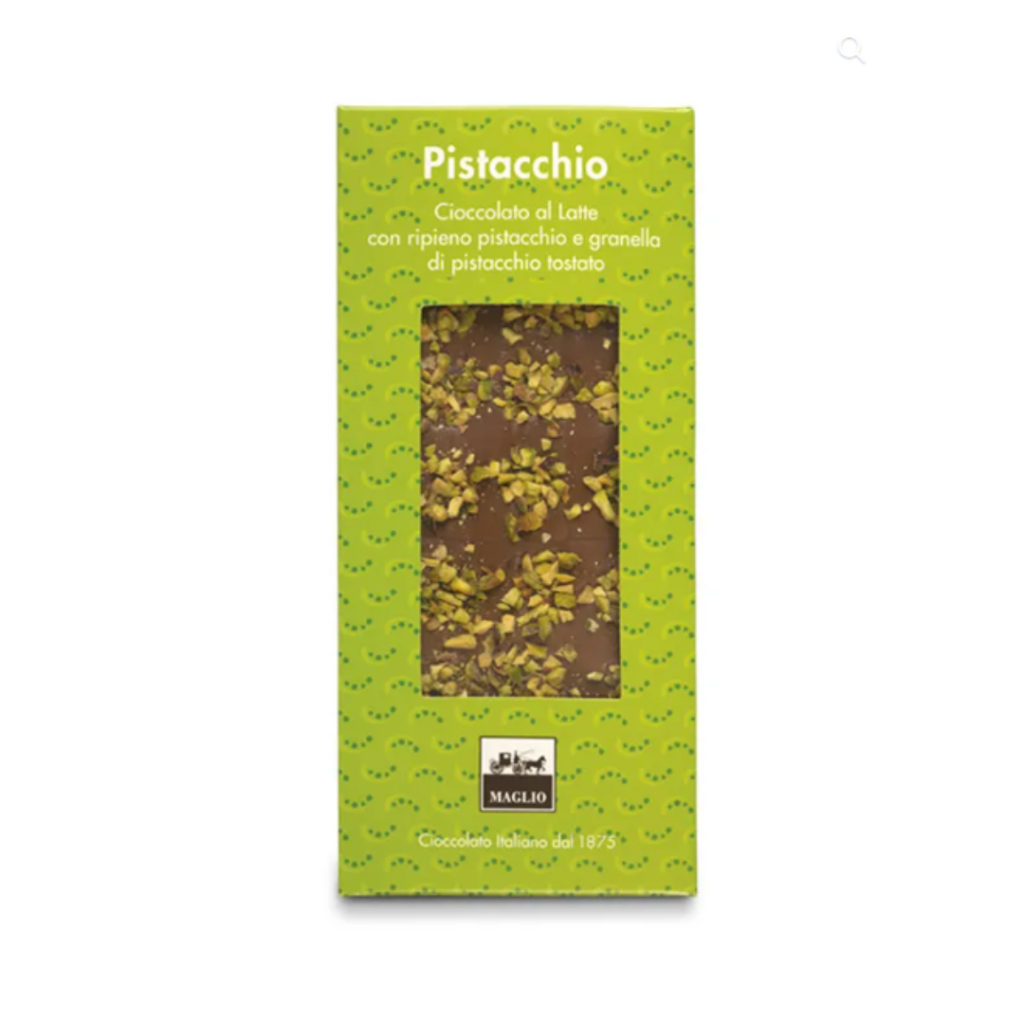 This 95 g milk chocolate bar is crafted for chocolate lovers who appreciate harmony of flavors and textures. Smooth milk chocolate is filled with creamy pistachio paste and enhanced with finely chopped roasted pistachios, making every bite a treat. Its elegant design makes it perfect for snacking, indulgence, or as a thoughtful gift.