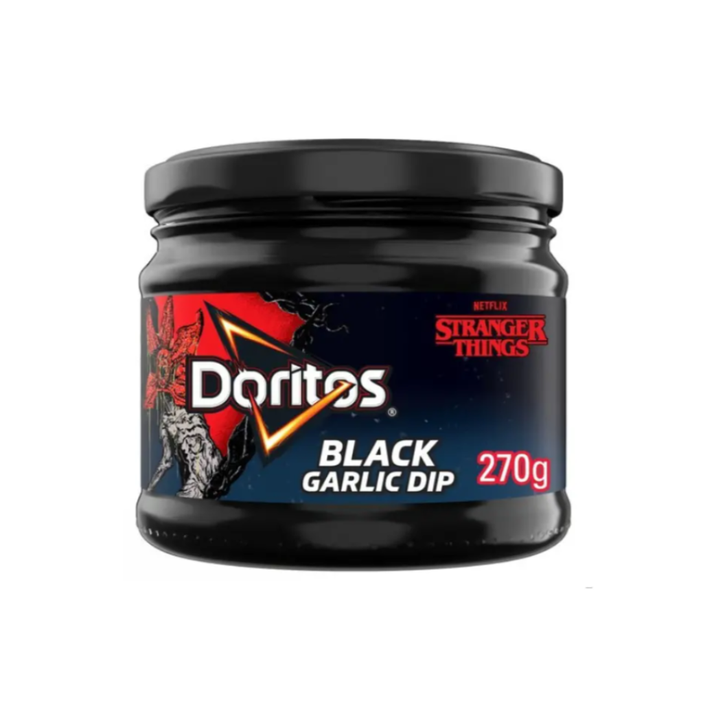 Fedezd fel a Stranger Things x Doritos limitált kiadású fekete fokhagymás mártogatósát! Ez a pikáns, karakteres ízvilágú mártogatós tökéletes kiegészítője a Doritos tortilla chipseteknek, legyen szó sajtos, Cool Original vagy Chilli Heatwave ízről. Hidegen fogyasztva a legfinomabb, és vegetáriánusok számára is ideális. A Doritos elkötelezett a merész, intenzív ízek és ropogós falatok mellett, így minden alkalomra izgalmas snackélményt nyújt, akár egyedül, akár barátokkal.
