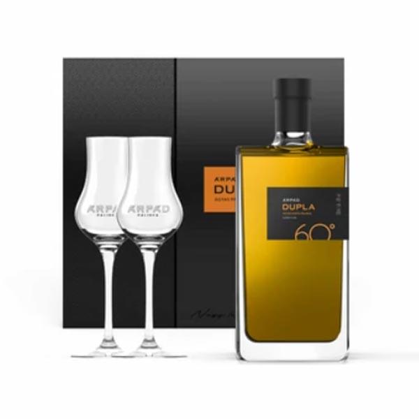 Az Árpád Dupla Ágyas 60 Körte Pálinka egy kivételes minőségű, gyümölcságyon érlelt pálinka, amely friss és aszalt körtéből készült. Élénk aranysárga színe, intenzív gyümölcsös illata és gazdag, krémes íze különleges kóstolási élményt nyújt. A díszdobozos kiadás két elegáns kóstolópohárral tökéletes ajándék is lehet.