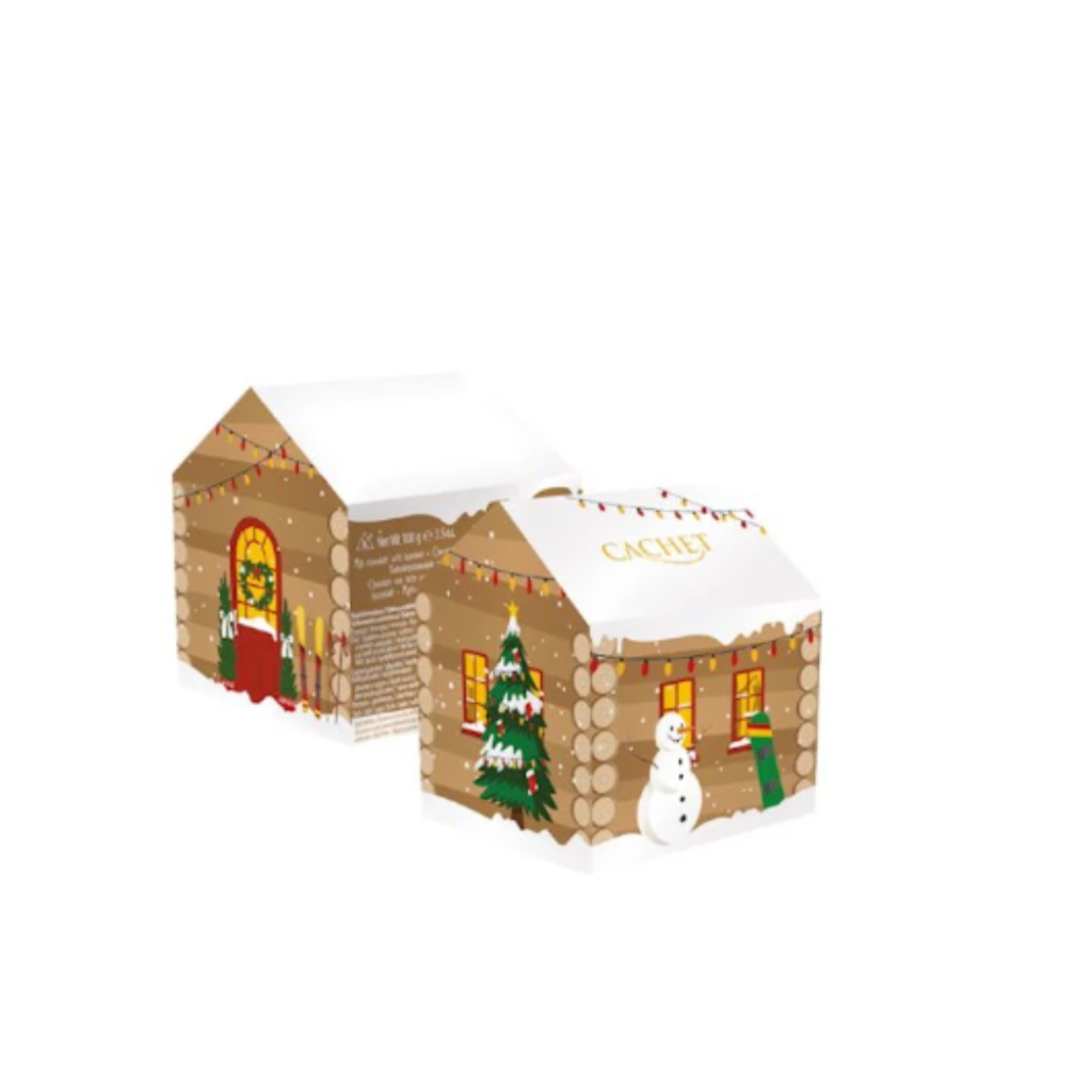 A Cachet Karácsonyi házikó praliné egy elegáns és ünnepi finomság, amely tökéletes ajándék a karácsonyi időszakban. A doboz 11 darab, egyenként csomagolt belga pralinét tartalmaz fehér-, tej- és étcsokoládé válogatásban. A házikó alakú, dekoratív papírdoboz (10×9×9 cm) nemcsak ízletes csokoládékat rejt, hanem hangulatos karácsonyi dísz is lehet otthonodban. A gondosan összeállított ízek és a kiváló minőségű alapanyagok egyedülálló ünnepi élményt nyújtanak.