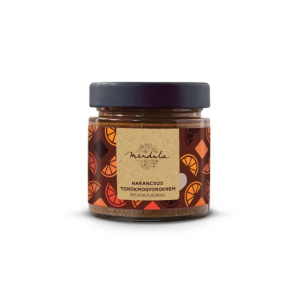 A Mendula Narancsos törökmogyorókrém étcsokoládéval igazi ünnepi finomság: pörkölt mogyoró, belga étcsokoládé és kandírozott narancshéj tökéletes harmóniája. Krémes, természetes, pálmazsír- és adalékanyag-mentes.