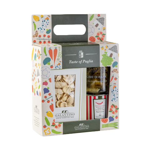 A Galantino Puglia íze ajándékcsomag ideális gasztronómiai élmény otthon. A csomag tartalmazza a tipikus pugliai orecchiette tésztát (500 g), friss fehérrépa zöldjét (320 g), valamint egy üveg chiliolajat (100 ml). Az elkészítés egyszerű: forraljunk vizet egy fazékban, sózzuk meg, és főzzük az orecchiette-et körülbelül 18 percig. Melegítsük fel a fehérrépa zöldjét egy serpenyőben, majd keverjük össze a tésztával, és tálalás előtt locsoljuk meg chiliolajjal. Egy igazi dél-olasz élvezet, ami a Puglia régió ízeit hozza el az asztalodra.