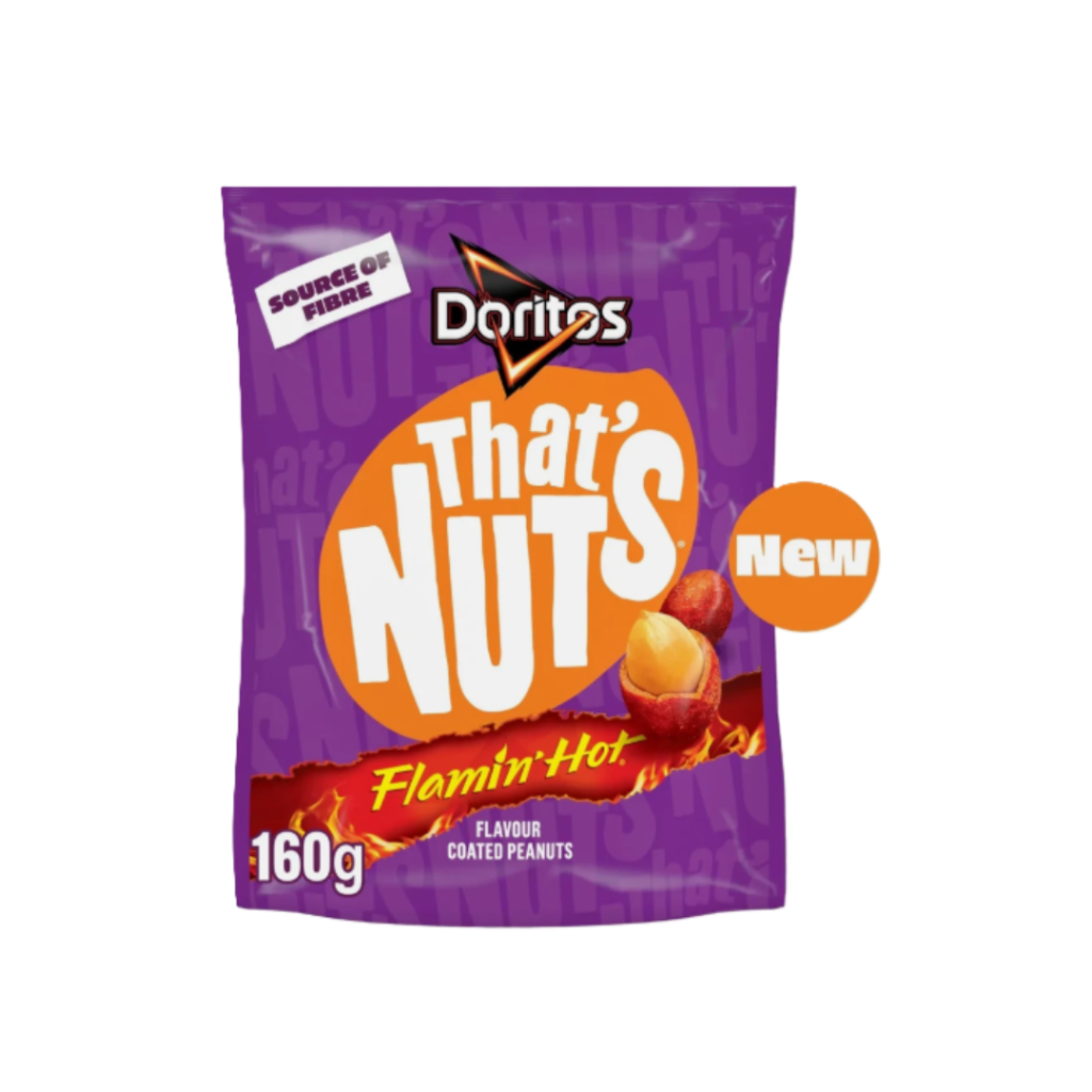 A Doritos That’ Nuts Flamin’ Hot egy izgalmas snack minden ropogós falatért vágyóknak. Prémium minőségű földimogyorót aranyló, ropogós bevonattal vonnak be, majd Doritos Flamin’ Hot ízzel fűszerezik. Ideális megosztásra, és a vegetáriánusok számára is tökéletes választás. Fedezd fel a különleges nassolnivalók világát, próbáld ki a Doritos Chilli Heatwave, Walkers Max Punchy Paprika vagy Walkers Salt & Vinegar bevonatú földimogyorókat is. Miért állnál meg egyetlen íznél, amikor mindet élvezheted?